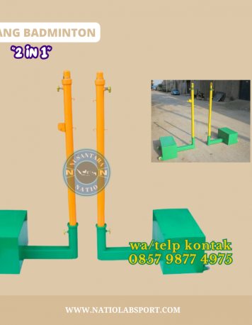 Rp 3.000.000MOBILE PORTABLE TIANG BADMINTON, MP-TB (Pemberat Beton) Rangka Pipa 2 inch Ukuran net mengikuti standar yang berlaku Ketinggian net dari lantai 1550mm Tiap pemberat mempunyai beban sekitar 75kg/tiang Pemberat terbuat dari coran beton Dilengkapi roda agar memudahkan perpindahan Sistem knockdown bongkar pasang untuk mempermudah pengiriman