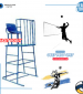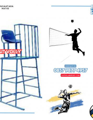 Kursi Wasit Voli, NT Kursi dan dudukan lantai dapat diatur ketinggiannya Tinggi kursi dari lantai : 1550-1750mm Tinggi lantai berdiri : 950-1150mm Dimensi keseluruhan : 1150x950x2150mm Rangka besi utama 1-1/4” Bahan Kursi Fiberglass Dilengkapi roda dibagian belakang untuk membantu perpindahan